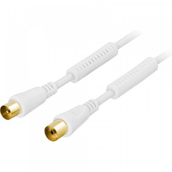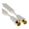 Antenn kabel koaxial med ferritkärnor för TV, 1.5m, vit, guldpläterade kontakter