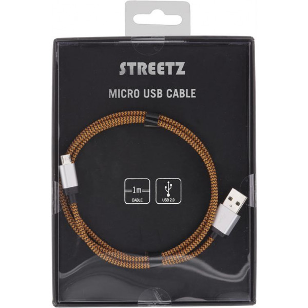 Micro USB - USB-A kabel 1m Synk Laddning Tyg Orange