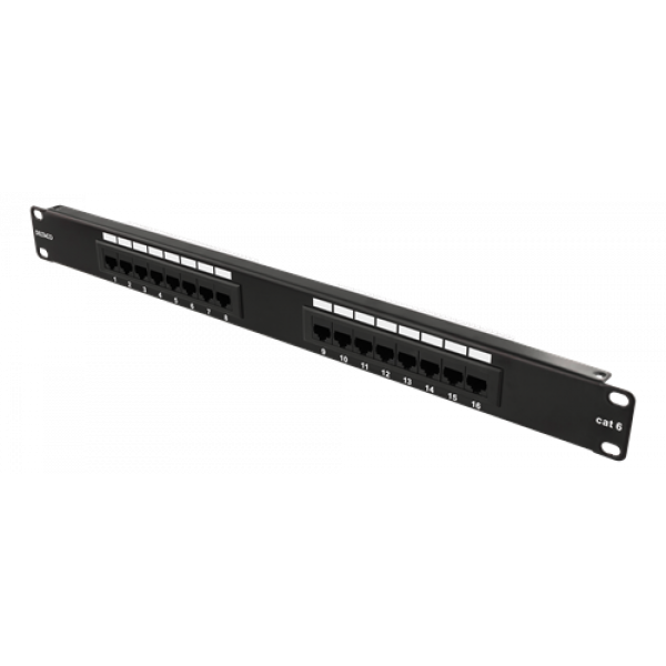 19" patchpanel, 16xRJ45, Cat6, UTP, 1U, 10Gbps, svart PAN-102