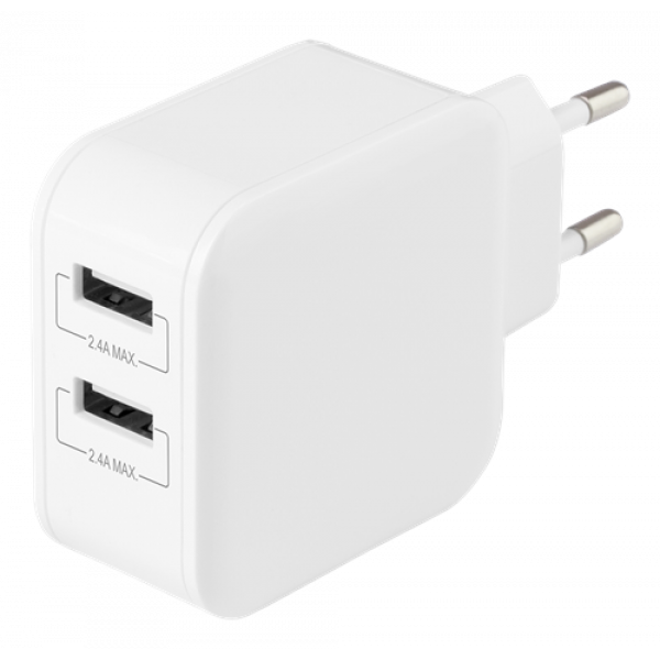 Väggladdare USB-A x2 4,8 A, 24 W vit